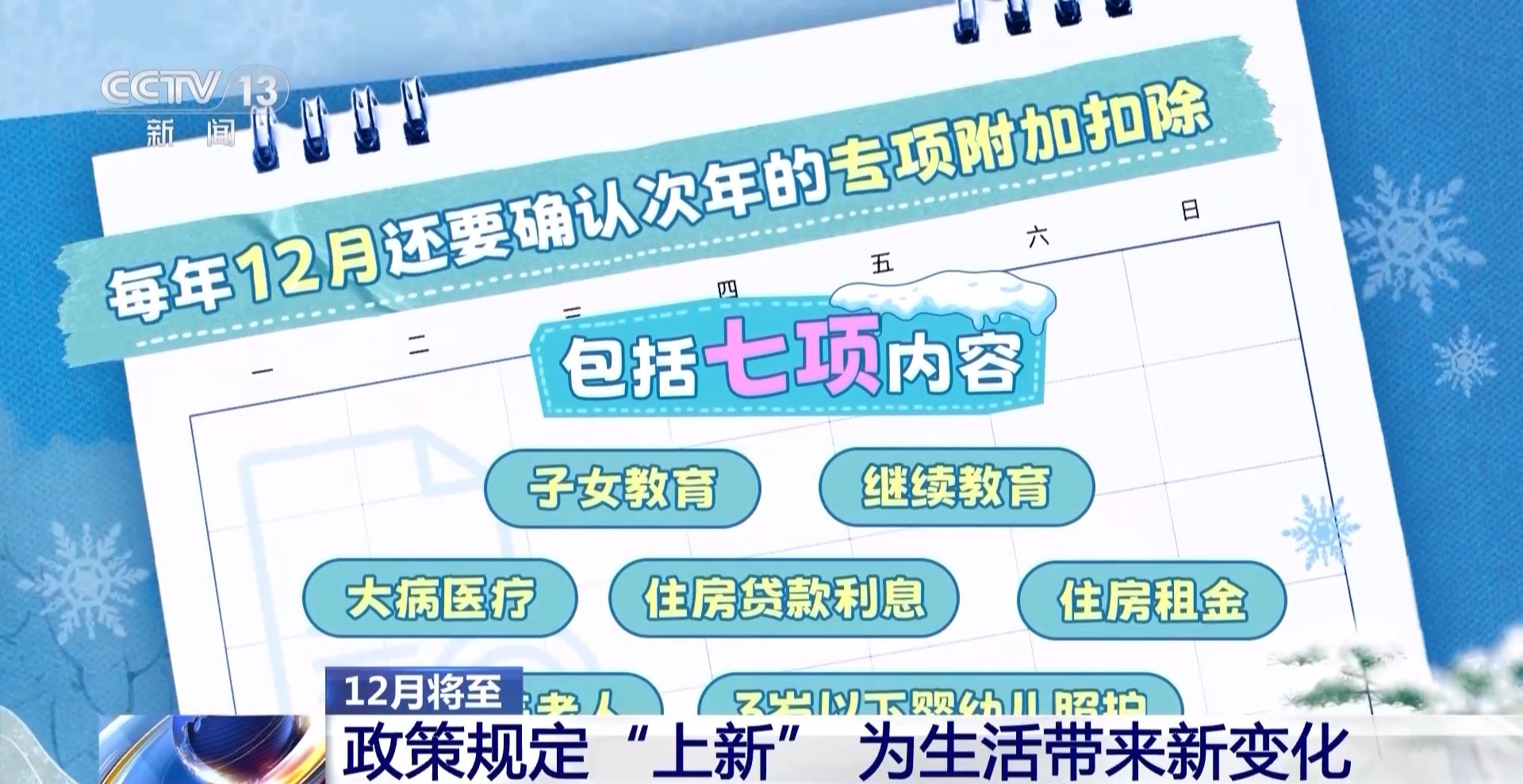12月仍是个税汇算环节节点:若是正在12月31日前领到年终,每人每年只能选择一次金零丁计税。同时,每年12月还要确认次年的专项附加扣除,包罗七项内容。